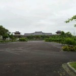 We couldn’t help noticing a huge Buddhist temple across the road, so went in to pay our respects. After carrying my backpack past a sign with booze, cigarettes and a meat chop covered with red crosses, I thought guiltily of the roast lamb ciabatta buns Felicity had made us for lunch, and offered to wait outside while she took a look around. Fortunately, just inside the door a young woman invited us to leave our bags on a shelf, so our contraband was safe.