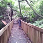 Next we headed up the hill to Mission Heights where we walked some of the trails in the huge Point View Reserve. After a picnic lunch at the trig, we headed down into the bush where we discovered an attractive bridge above a small waterfall.