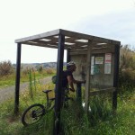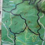 We started down the trail just opposite the map, which had a well-made sign saying “Pete’s”. This isn’t one of the names on the map, but we charged down it anyway and enjoyed about half an hour of challenging single-track.