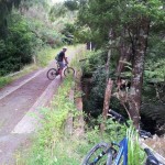 We ended up on a nicely maintained road, and rode quite a way, mostly up hill, hoping to spot another bike track down again.