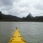 Which ended up with us launching into the sheltered waters of Oruamo – or Hellyers creek on our own side of the harbour. We first headed north through the mangroves to the top of the Oruamo, where there is a small waterfall.