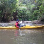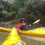 Next we paddled back past the car at the end of Manuka Rd and turned into the Kaipatiki Creek. At the top is a pretty pool, with another small waterfall. Unfortunately though, there was nowhere to land an eat our lunch, so we went back downstream until we found a spot.