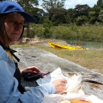 We found the roads we had sussed out on the map, and soon found ourselves at a pleasant little park with a boat ramp, just across from Sandspit. On the way in, I had noticed two river channels with a long peninsulas to in between them. The end of the peninsula is Tongue Point. I also remembered seeing on a map that there are two longish rivers running inland from Sandspit, and that we wanted the northern channel if we intended to reach Matakana township.  Little did I realise, the southern channel was to the south of the ramp where we launched, so we paddled straight across the river and headed up the wrong side of the peninsula.
