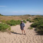 Early this morning the two of us walked to the top of the ‘mountain’ behind their house, which is only about 200m above sea level. The yellow gorse, purple heather and white daisies made a colourful environment to walk through.