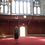 Our next major stop was the City of London Guildhall. It seems to be the equivalent of a Chamber of Commerce, although only some trades seem to be represented. The twelve Great Livery Companies have banners hanging down both sides of the Great Hall: Mercers, Grocers, Drapers, Fishmongers, Goldsmiths, Skinners, Merchant Taylors, Haberdashers, Salters, Ironmongers, Vinters, and Clothworkers. The photo shows the statues of Gog and Magog, who are the giant guardians of London. We asked a security guard if we could see the crypt beneath, and he obligingly took us down.
