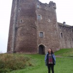 The castle is on a prominent site at the confluence of two rivers. There was a Roman fort nearby, as they also recognised the strategic location. Mary, Queen of Scots visited Doune regularly, and we had a look around the rooms where she stayed. In 1745, the castle was used as a prison for English captured at the Battle of Falkirk, but several of them escaped by tying their bedsheets together and climbing down the tower.