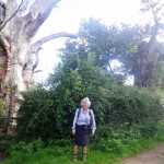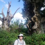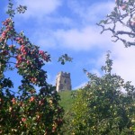 There are small lanes called “droves” running in all directions across the countryside, so we hiked up and down a few until we found a pair of ancient oak trees called Gog and Magog. These are the last survivors of an avenue of oaks that used to mark a processional route for druids heading for the Tor. Obviously they mark an important ley line. Sadly, Gog seems to have expired a few years ago, and Magog doesn’t look very healthy either. People have tied ribbons and little notes to the branches, but I don’t think they are helping.