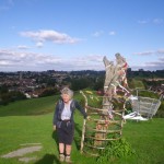 There are a couple of concrete paths leading to the top because it is visited by hundreds of people a day, and they are concerned about erosion. There were fantastic views from the summit, but it was very windy. We sheltered for a while beside the tower and listened to a man lecturing a university field trip. The plains below (known localy as “levels”), have mostly been a swamp, but major engineering works in the 19th and early 20th century crated drains and canals to created fertile farmland. At one time the Tor was an island. It is supposedly home to the king of the fairies, but there was no sign of him today.