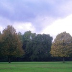 After a few more suburban streets we found the Pinn river, and began following it downstream, past some well-tended allotments. The path dived into some woods, then opened out onto meadows where we would have seen yellow celandine flowers if it was spring. Instead we saw yellow leaves fluttering down from the trees.