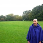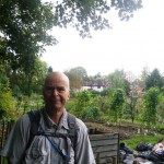 Just as we were thinking it was time for lunch it started drizzling, so we had to put our ponchos on. It didn’t come to much, so we ate on a bench outside the walled garden of Eastcote House. We walked around inside afterwards; it must have produced quite a lot of food when it was in business. Now it is run by local volunteers, and grows mostly decorative plants instead of vegetables. Outside, the locals have planted several dozen varieties of heritage apple and pear trees. There are a few old trees still producing, so we harvested a couple of apples to finish our meal.