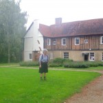 In 1451 the entire manor of Ruislip was given to Kings College, and they leased the farm to various people for the next 480 years. In 1508 they demolished the priory and built the Manor Farm House, which still exists today. Felicity is standing outside it in photo 7. We had a look inside, and watched an informative video about the buildings which have come and gone on the site over the years. When the building was restored recently, they found wallpaper from the early 1700s behind panelling.