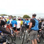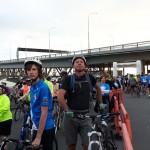 Kerry’s wife dropped us at Westhaven and we rode around the marina to the starting gate, beneath the harbour bridge. He had a secret tactic for getting a good position in the pack; he blatantly pushed through a gap the barrier, right at the front.