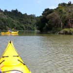 At 10.45AM this morning we launched our kayaks into the Hoteo River, at the boat ramp beside the State Highway 16 bridge.