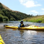 Then, drama! The current swept me sideways, and up against the branches of a fallen tree. With the river now pushing hard along one side of my kayak, and the branches of the tree holding the other side firmly, I expected I was about to flip over. This wouldn’t have been too much of a disaster except that I was holding my un-waterproof phone/camera.