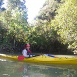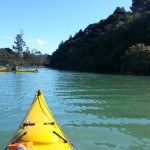 We first paddled up the northern arm, under the footbridge at the end of Haigs Access Rd and into Weiti Forest. Or to be more accurate, into where the forest used to be until they cut it down earlier this year. Last time we tried to get up this way we found our progress blocked by a log across the creek not far from the bridge, but today we were able to get quite a distance.