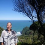 There is an attractive stone seat built out at the end, so we sat there to eat our lunch, while admiring the spectacular views. From there a benched track led us back down to Kohunui bay at the north end of Piha.