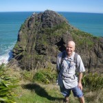 We crossed the small stream at the north end of the beach, and found the trail leading up to Fishermans Rock point, from where we could see Paikea bay and Anawhata beach in the distance.