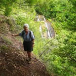 The Tongoio falls are behind Felicity in the photo and are actually quite high, but not completely visible from the lookout.