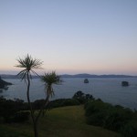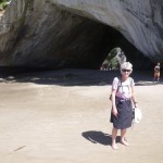 We expected that the six camper-van places at the Cathedral Cove car-park would be full on a fine Anniversary day weekend, but to our surprise there was one with a van just leaving when we arrived mid-afternoon. There are only about 20 places for cars – most people have to park down in Hauhei and catch a shuttle bus, so we felt very privileged.