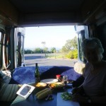 By the time we loaded the kayaks and all our gear into the camper-van it was nearly midday. We were keen to get down to Coromandel as soon as we could, so I drove until we reached the top of the hill on the Kopu – Hikuai road where I knew there was a nice spot to stop for lunch.
