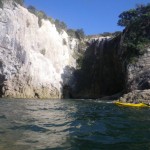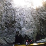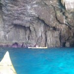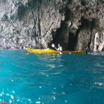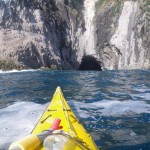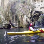 After a bit of a rest we paddled back out and continued along the spectacular coast. Another big sea cave looked safe enough to paddle into, and sure enough the water inside was fairly calm. I even dared to get my non waterproof camera out and get a shot of Felicity.