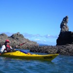 In the morning we drove out past Te Kouma, where the ferries from Auckland berth, and launched the kayaks off a beach at the end of the road. We passed huge areas of mussel farms on our way out to Whanganui Island.