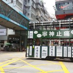 I haven’t been able to get hold of a map, so every expedition around the local neighborhood results in me getting temporarily lost in the maze of skyscrapers. There are plenty of road signs, but since heading east towards Kowloon often requires turning west and looping around they are less helpful than you might suppose. Only occasionally there is a view of the of green hills through the buildings which lets me orientate myself as to which direction the coast is in.