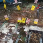 I have been mostly just walking around town, which gets tiring after a couple of hours, but then I discovered that you can hop on any of the double-decker trams running along the main roads, sit watching the town go by as long as you want, then pay less than 50 cents when you get off. At one end of the line I visited a market, with a fascinating variety of species of sea-life waiting to be purchased and eaten.