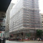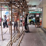 I was impressed to see that the Chinese still use bamboo scaffolding, even on high-rises dozens of floors high. I photographed a team working, with strips of plastic that they use to tie it all together hanging from their belts.