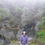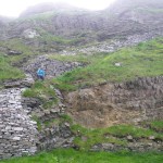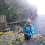 Another short drive took us to the top of the Whaligoe Staircase. This consists of 365 stone steps down a cliff into a rocky bay. In the olden days, village women used to climb these steps every day carrying baskets of herrings. It was rather foggy and cold at the top, but quite clear down at sea level. We were warm by the time we climbed back up to the van.