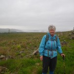 The Way from Drymen climbs up hill through the Garadhban Forest, mostly along forest roads. Some of the trees have been harvested recently, as we could see by the piles of logs beside the track.
