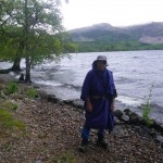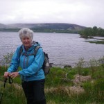 After breakfast this morning our host drove us back to Gairlochy where we had left the Great Glen Way yesterday. The hot summer sun has been replaced by cloud and mist, and the temperature seems to have dropped about 10 degrees. It didn’t rain, but we needed our coats on to keep out the cold wind. No swimming in the loch today!
