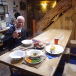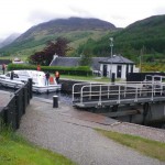 We ended our day with a visit to the Eagle Barge “floating pub” for dinner. This is an ex Dutch coal barge that has been permanently moored at Laggan Lock for the last 14 years. During the 2nd world war it was requestioned by the Germans who armoured it and used it as a troop carrier. It is filled with all sorts of strange items collected from around the world, including actual swords used in the movies Lord of the Rings, Last Samurai, and Braveheart. We had a wonderful dinner of assorted seafood and a grilled trout.