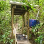 This bush is at the southern extent of kauri habitat, so naturally they are concerned about kauri die-back. We were impressed by the shoe cleaning station: you step on a foam mat sitting in a metal tray, and Trigene disinfectant squishes up and wets the underside of your boot quite effectively. The stations are covered with a small roof and water-collecting system, so they would take a lot less work to maintain in areas where vehicle access is not possible.