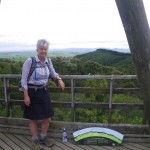 We spent a couple of hours exploring the track network, and enjoying the views out over the Waikato valley from the wooden tower at the top. The hills behind Felicity are the Hakarimata range in the north-west and behind me are the distant Kaimai ranges and Mt Te Aroha in the east.