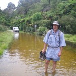 This was fortunate, because when we drove up the Bullock Creek Road to walk the Cave Creek Track, we only made it half way before encountering a sign warning people not to continue if water was covering the road. It didn’t look very deep, so we parked the van, changed into our trusty Crocs and carried our boots through the flooded section.