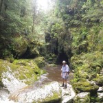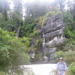 About a kilometre further up the highway is the start of the Pororari River Track. We ate lunch in the carpark then set of up a manicured trail through coastal forest. We had been thinking about kayaking in this river, but when I saw the swift-flowing torrent of brown water spilling out of the mountains I decided that it didn’t look like fun. At one point the track goes down some wooden steps to get under a huge limestone boulder. It was supposed to take an hour to get to the junction of the Inland Pack Track where we turned back, but it only took us 40 minutes.