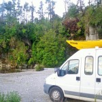 The water was very cold to swim in, but now that we are dry and sitting in the warm van it is nice to feel clean. The river flats surrounding us must have been farmed at some stage because they are covered in grass, giving us great views of the bush running up each side of the valley.