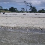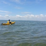 Back out on the harbour we found a nice looking beach, but as I was nervous about the wind against an outgoing tide we decided to get to shelter before stopping for lunch. As we passed the sandspit, the birds weren’t impressed by Felicity paddling close to get a photo.