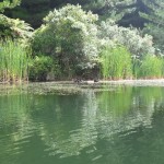 I explored up another branch of the river, and came to the remains of an old wooden viaduct high above the water. Underneath was another small gorge, but I couldn’t get much further. I was interested to see that the water at the end was perfectly clear, in contrast to the rather turbid water of the main lake.