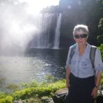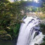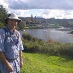 After breakfast we continued driving north to the Bay of Islands, as I was keen to take a walk up the Kerikeri walkway to have a look at a product called Geoweb which the Dept of Conservation has trialled up there for use in track construction. We packed a picnic lunch and set off a bit before mid-day. At the attractive Rainbow Falls, we sat on a bench in the sun to eat our sandwiches, and tried to ignore the mist from the falling water that drifted our way from time to time. It wasn’t until we walked a bit further to the top of the falls that we could look back and see the rainbow ending near where we had been sitting.