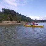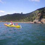 On Sunday morning we had a bit of a late start, but by about 11.30 we were unloading the kayaks at Opito Bay and preparing to launch. The sea was fairly calm so we headed out of the Kerikeri inlet and north into the Te Puna inlet. This section of the coast is mostly still clad in native bush, but every little beach has at least one very flash house, some with private jetties – multi-millionaire territory.
