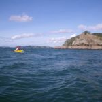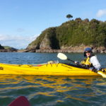 I had noticed a menacing band of dark cloud to the south, but when we started paddling back I was happy to see it had moved inland and wasn’t going to affect us. The wind had picked up a bit, but it was still fairly easy paddling until we reached the end of the peninsula where the ocean swells bouncing off the headland were creating some medium-sized waves hitting us side-on. I tried to go wide enough to avoid the choppiest bit, but there were about a dozen yachts charging out of the Kerikeri inlet so we had to try and keep out of the main channel. Felicity was a bit outside her comfort zone for a few hundred metres. As soon as we rounded the corner we were back in sheltered water and could relax again, and I was able to get my camera out.