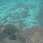 It took about 45 minutes to get out to Ellison Reef, and it was quite a different journey in a small open boat compared to the big launches we have been on. Fortunately the sea was fairly calm, because RIBs plane over the top of waves instead of cutting through them. I was impressed when the skipper stopped to pick up some floating rubbish. As we were departing, the guide pointed out a merchant ship sailing south inside the reef, and I was surprised by how fast it travelled – after only 20 mins it had disappeared over the horizon.