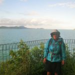 We arrived home for lunch about 2.30, then drove down the coast to a walkway around the cliff to Lugger Bay and on towards the lookout before Kennedy Bay. This is a beautiful track, but infested with viscous mosquitoes. Felicity isn’t wearing her raincoat in the photo because it was raining – she wanted some long sleeves for protection.