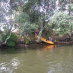 The rain didn’t come to much, so the next day we kayaked up the creek as far as we could get. There was a big herd of horses in the paddock, and one walked over a low bridge in front of us and looked very interested in us visitors down in the creek