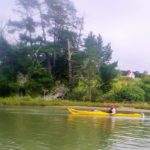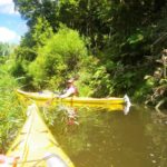 On Sunday morning the sky was looking rather grey, but we were right next to the river with the kayaks still unpacked so it seemed silly to waste the opportunity. We had only been on the water about 20 minutes when the first light shower hit us, followed by several more during the rest of the trip. It was warm though, and we didn’t bother to stop and put on our raincoats.