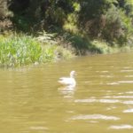 We parked right next to the mangroves and settled in for the night. After breakfast, we carried our boats to the ramp next to the wharf, and set off upstream. It took us almost two hours to get up as far as the highway, then we managed another kilometre of so before the stream became blocked with willows and we had to turn around. We enjoyed a naked swim in the mostly fresh water, then sat on the bank to eat lunch.