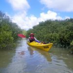 The wind started to pick up, so we decided not to continue out into the open waters of Hargreaves Basin. Instead we crossed back to the southern side of the river and explored a creek running down through the mangroves. Near the top we found a spot to land and eat lunch under one of the shady trees laden with tiny red berries that lined the shore. I think they were hawthorns, but I’m now wishing that I bought some home so that I could identify them for sure. Hawthorns are considered a weed, because they are happy to grow in inhospitable conditions, and they form a shady canopy which suppresses other plants.