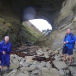 We didn’t want to sit around doing nothing all day, so we put on our coats and walked over to Cook’s Cove, where Captain Cook first landed in New Zealand back in 1769. The famous hole in the wall, which is an opening from a sheltered valley to the exposed coast, made a great place for a photo opportunity.